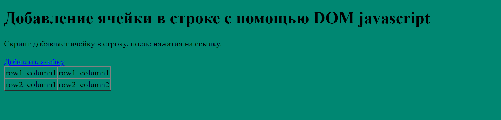 Я реализовал задание добавление ячейки при помощи js, используя innerHTML и appendChild